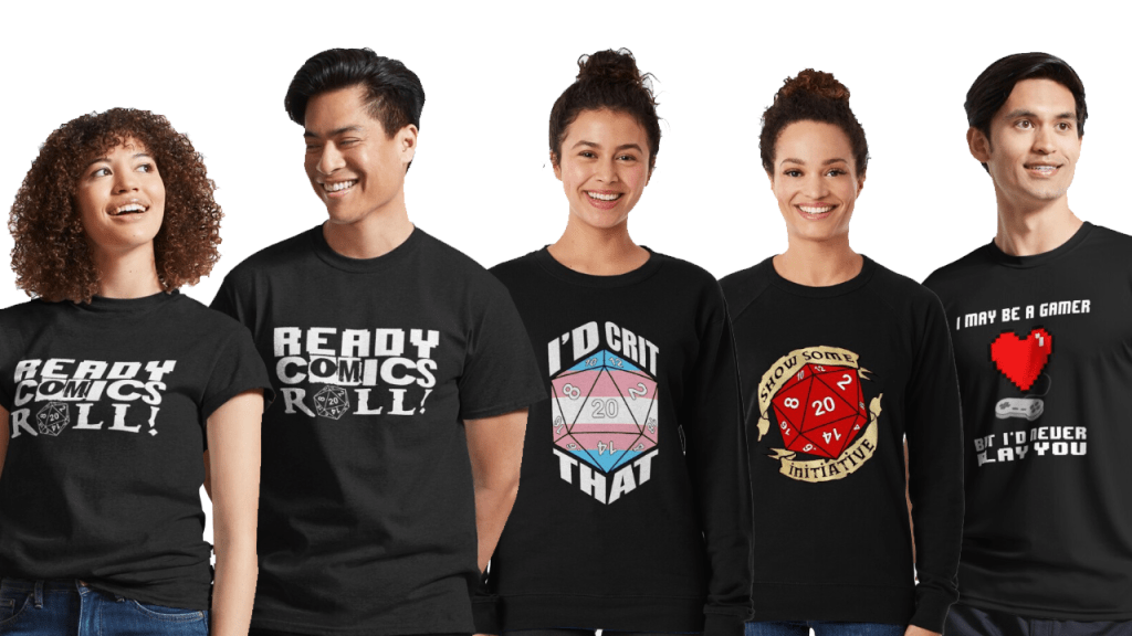 Show the world that you’re a Roller, your love for Slasher Support, or even the best TTRPG apparel that money can buy! Whatever you’re looking for, there’s a very good chance that we’ve got it in our Redbubble store!